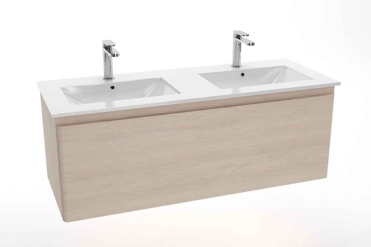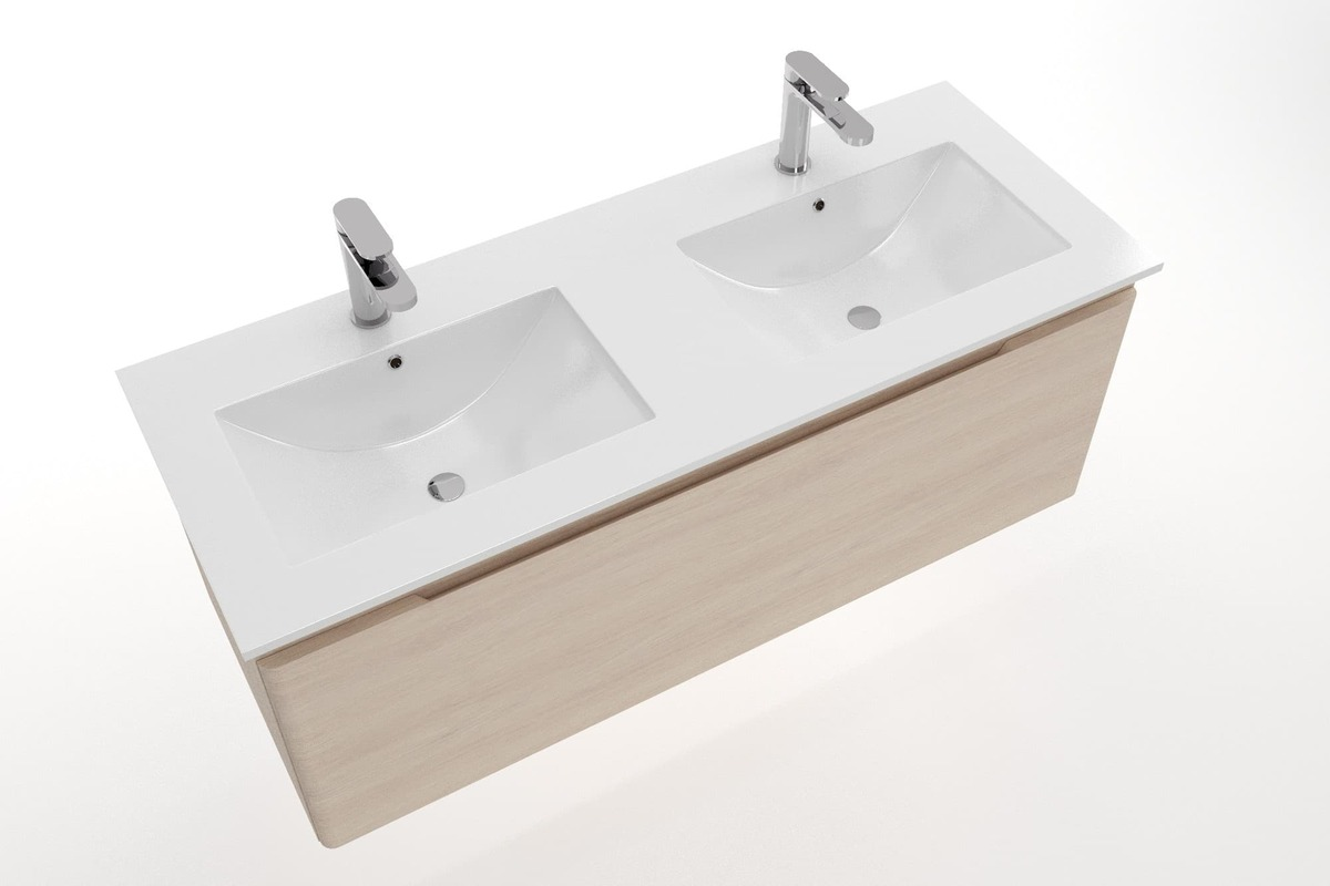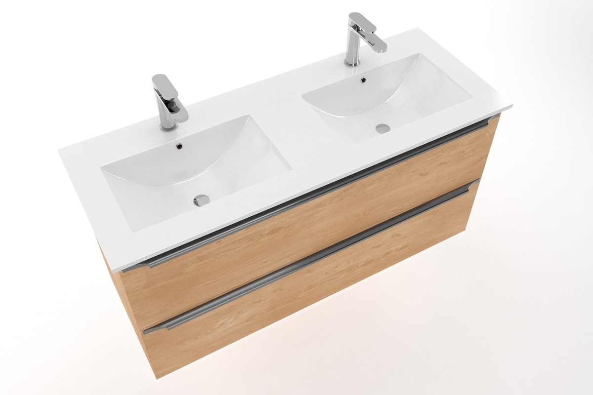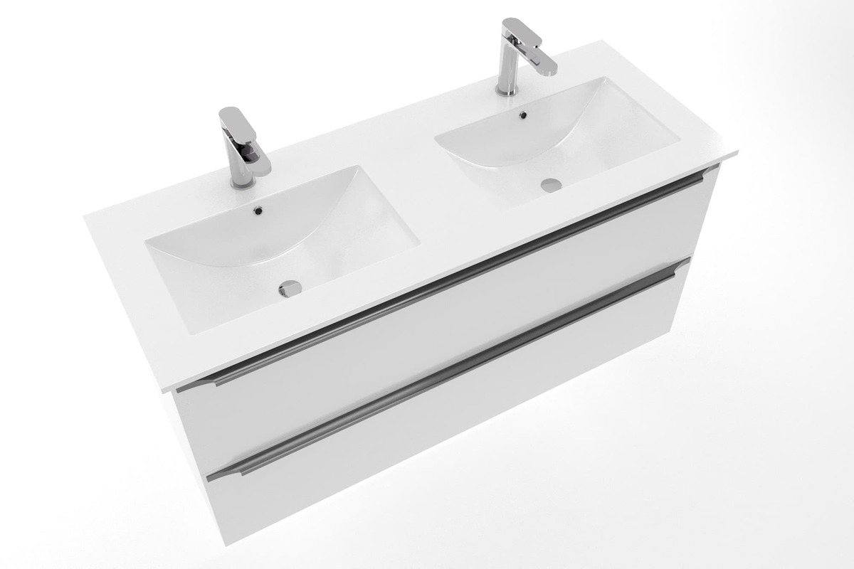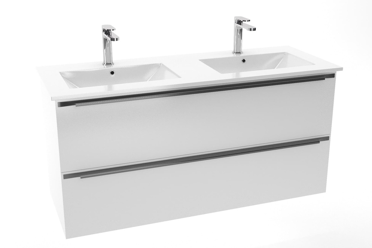 Naturel Modena 121x46 cm double vasque en céramique, 2 trous pour robinetterie, blanc (M2N12046)
