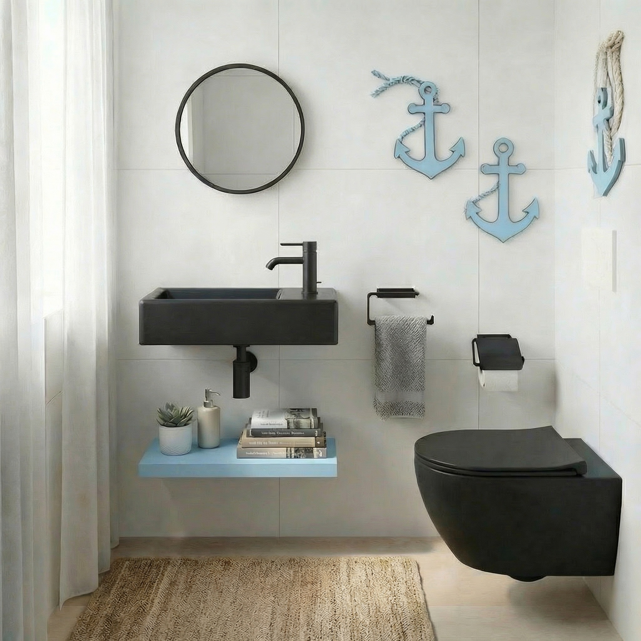 Swiss Aqua Technologies Lave-mains suspendu Brevis Noir 40,5 × 20,5 × 10,5 cm – trou de robinetterie à droite (SATBRE4020SRBKM)