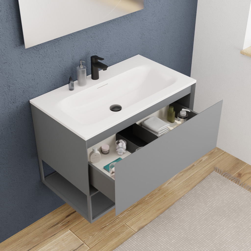 Affirmez le style de votre salle de bain avec le meuble Ceramia 80 cm Gris Foncé, un choix audacieux et moderne pour un intérieur élégant et fonctionnel.