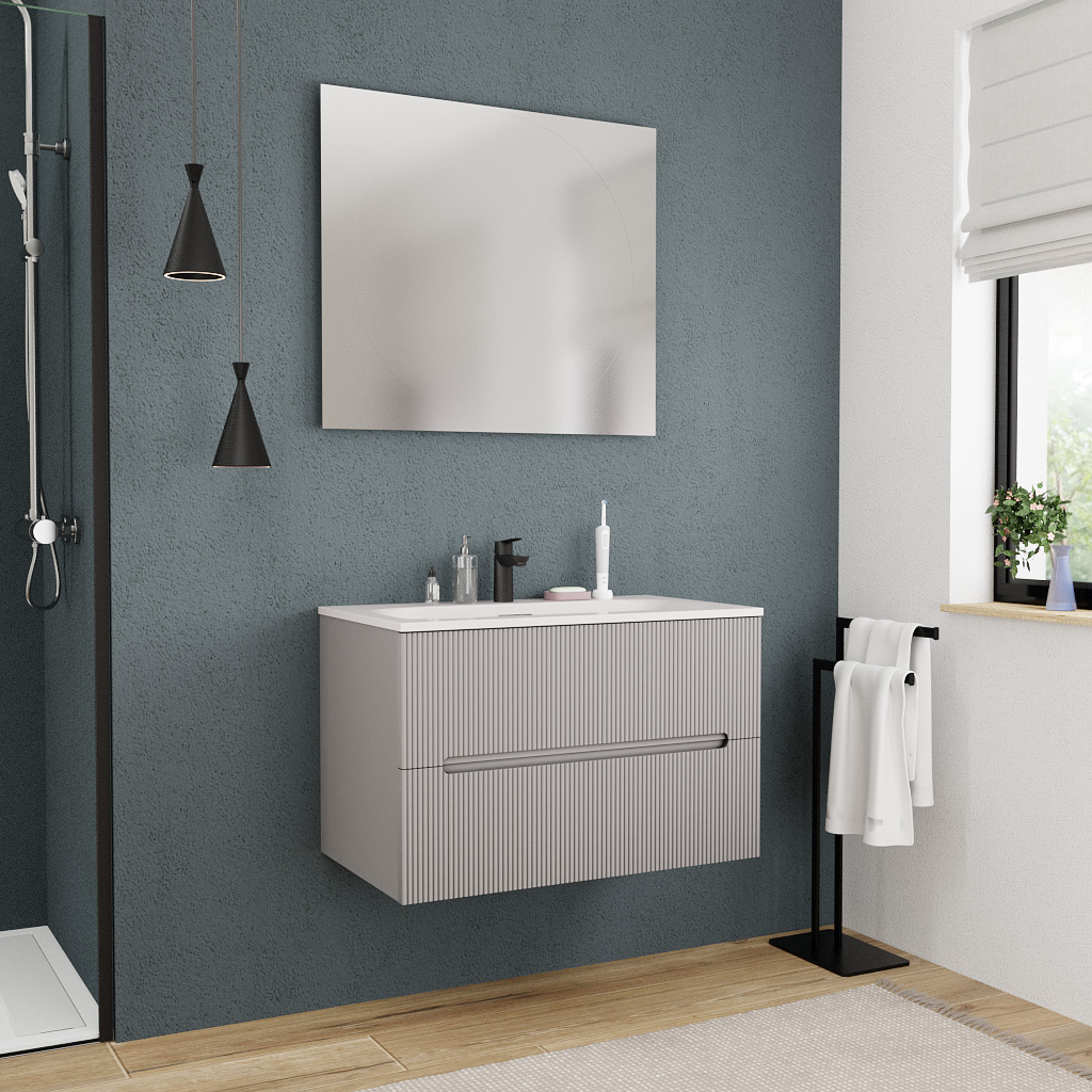 Nom du produit : Meuble de salle de bain Ceramia Gris Perle – 80 cm