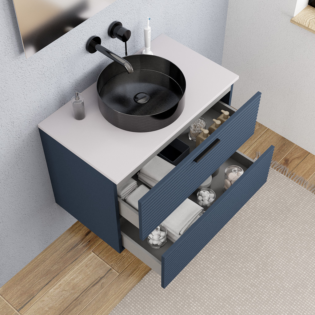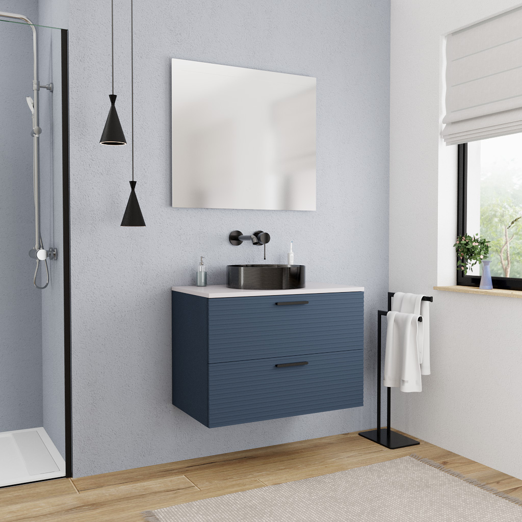 Ceramia Set 80 cm : plan vasque blanc mat + meuble assemblé, bleu foncé (CERAMIA-4DB80-S)
