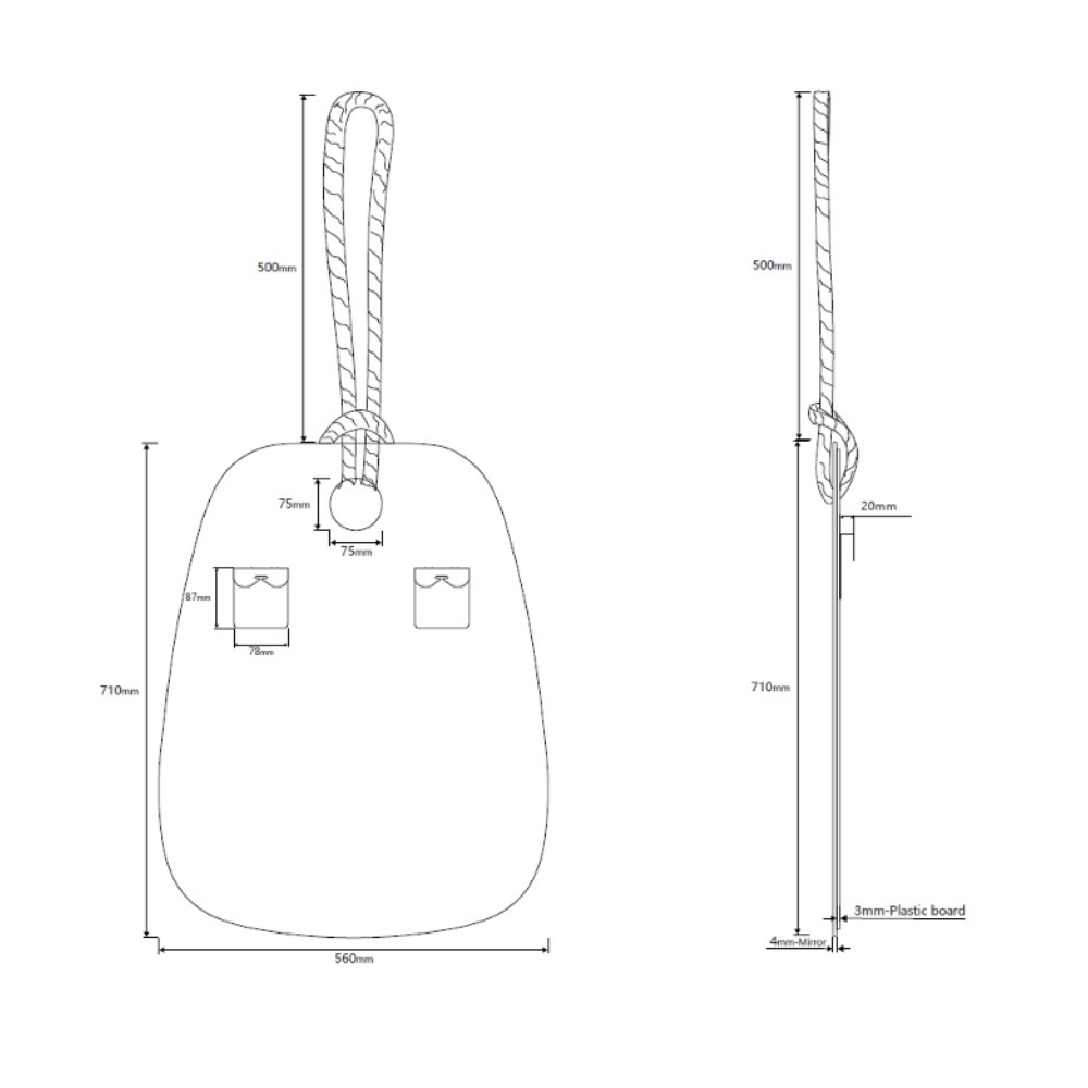 Miroir Design SAT Purity 56x71 cm – Suspension sur corde, Style Asymétrique, Installation Verticale
