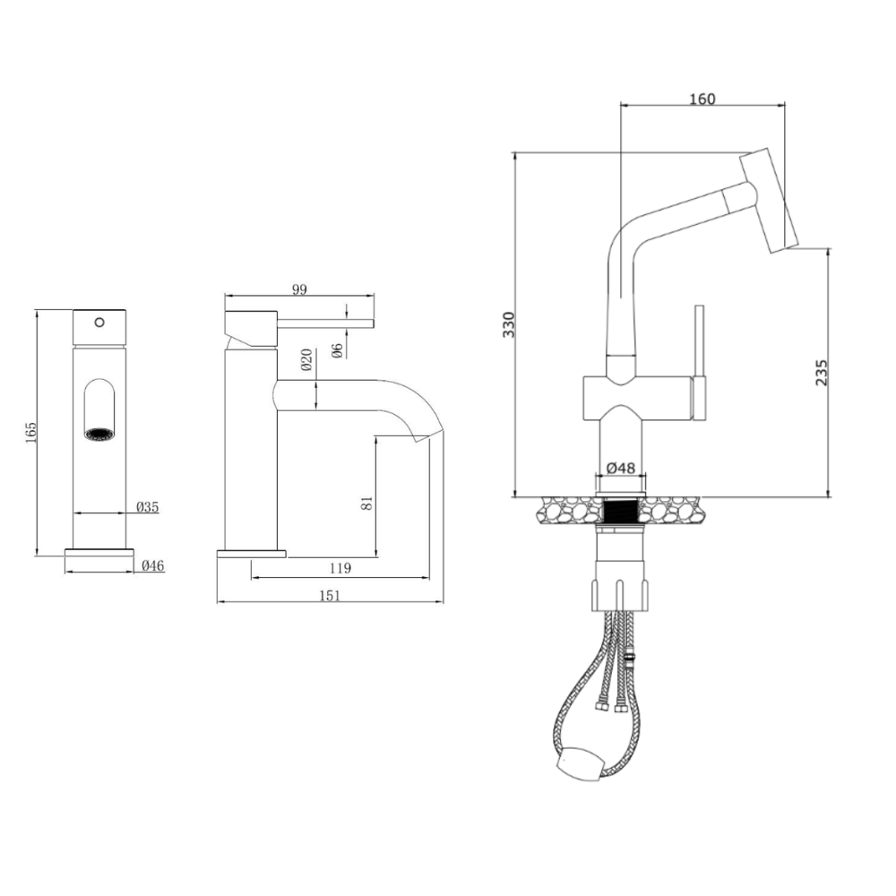 - Hauteur du robinet : 16,5 cm