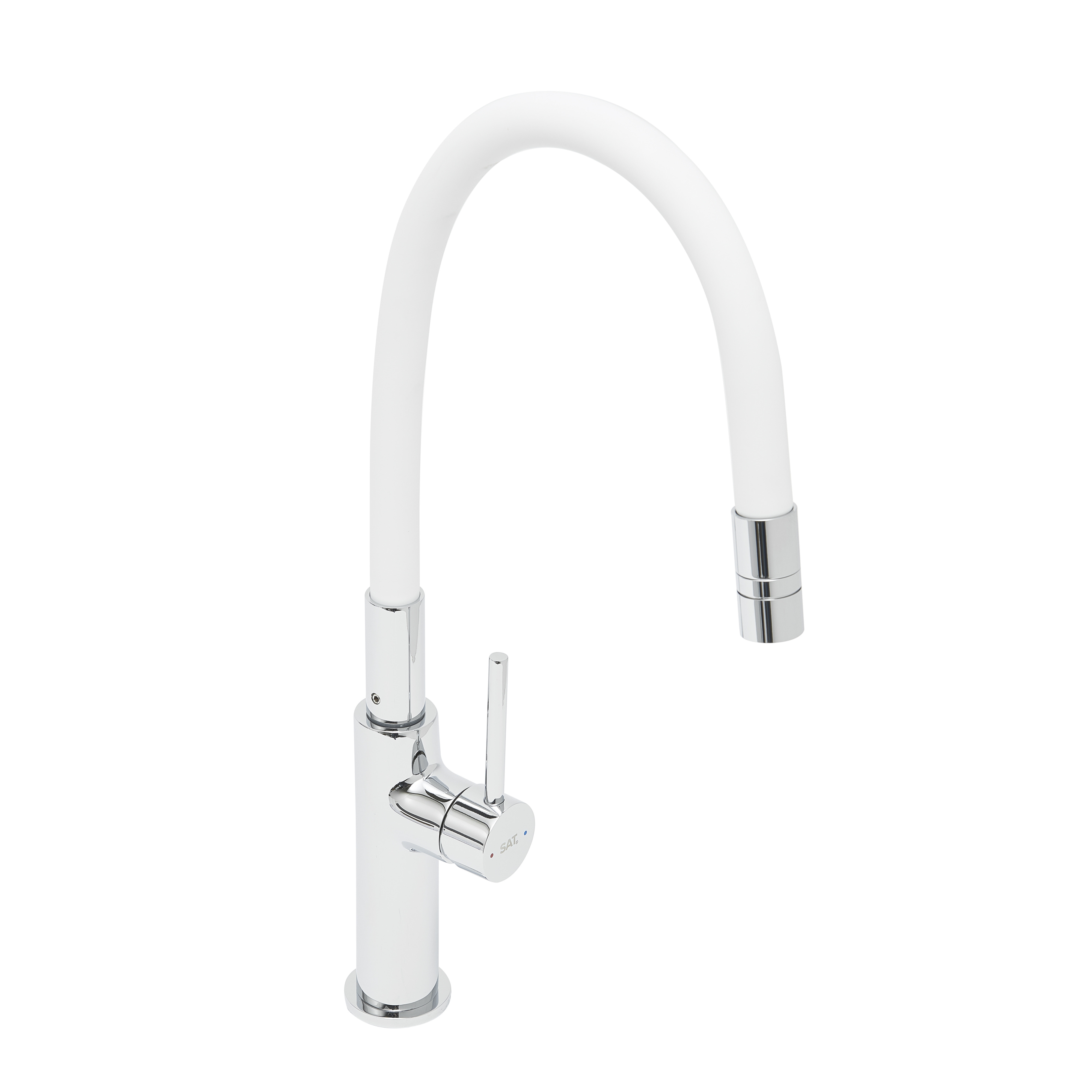 Mitigeur pour évier de cuisine, bec flexible en silicone, aérateur Neoperl®, cartouche en céramique, blanc/chrome (SATBSD290B) :