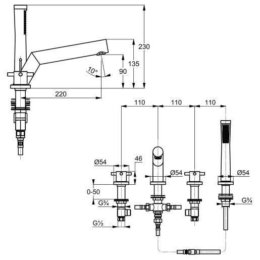 Kludi BOZZ mitigeur bain/douche DN 15 pour montage rebord carrelé 4 trous (384240520)