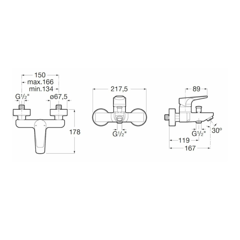 Caractéristiques du mitigeur bain/douche mural à levier, sans ensemble de douche, Roca Atlas, chrome (A5A0290C00) :