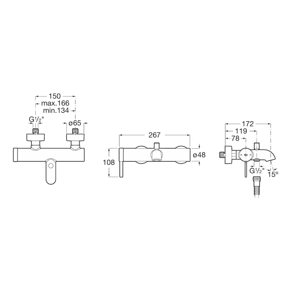 Caractéristiques du mitigeur bain/douche mural à levier sans ensemble de douche, Roca Ona, chrome (A5A029EC00) :