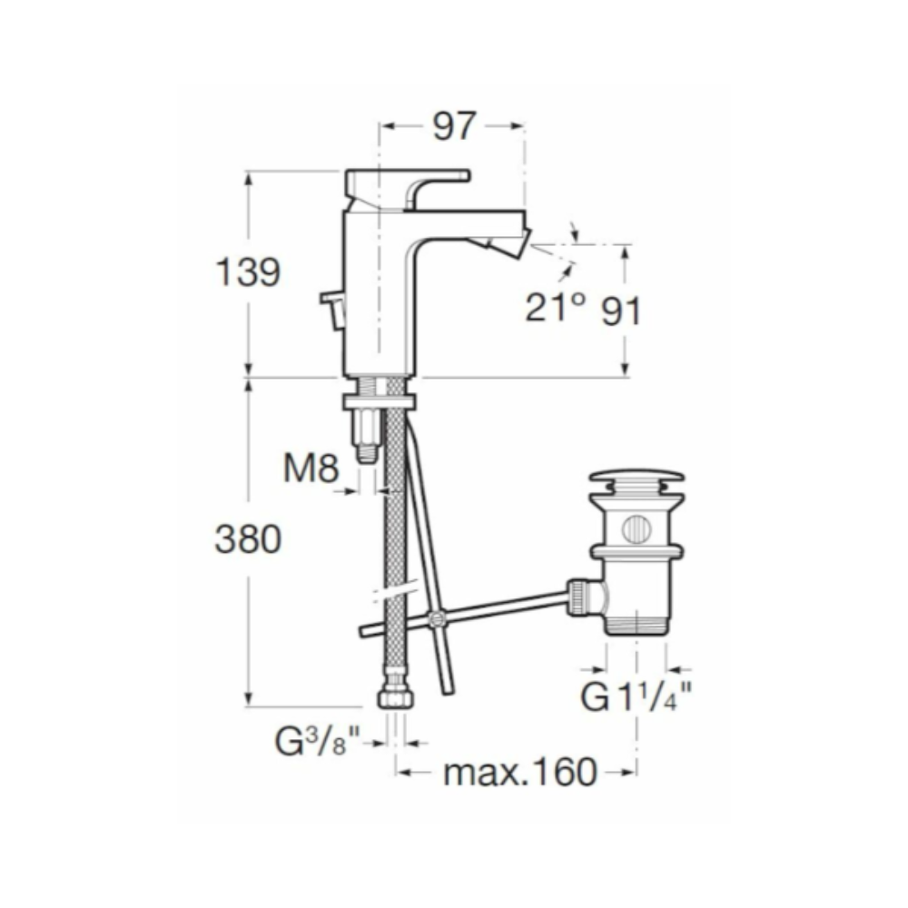 - Hauteur du mitigeur : 13,9 cm