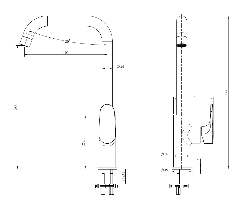 Caractéristiques du mitigeur cuisine avec bras pivotant or brossé, Swiss Aqua Technologies DARK (SATBSDA280LBZ) :