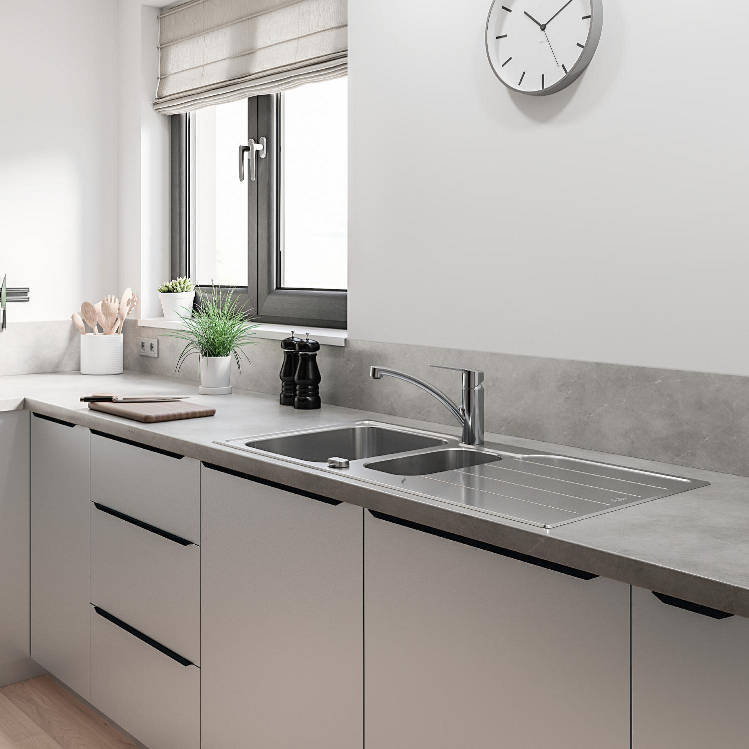 Créé pour allier un style épuré à une fonctionnalité pratique au quotidien, ce mitigeur d'évier monocommande GROHE Start représente une mise à niveau parfaite. Ce design classique a été revigoré pour répondre aux besoins des cuisines contemporaines, offrant un rendu sobre, minimaliste, un confort accru, et des performances plus écologiques. Adapté à une installation monotrou, son bec bas pivote en douceur sur 140˚, assurant une flexibilité optimale sans heurter les murs voisins. Disponible en finition chromée et équipé du Grohe StarLight, l'éclat et la brillance de votre mitigeur d'évier sont garantis pour perdurer dans le temps.