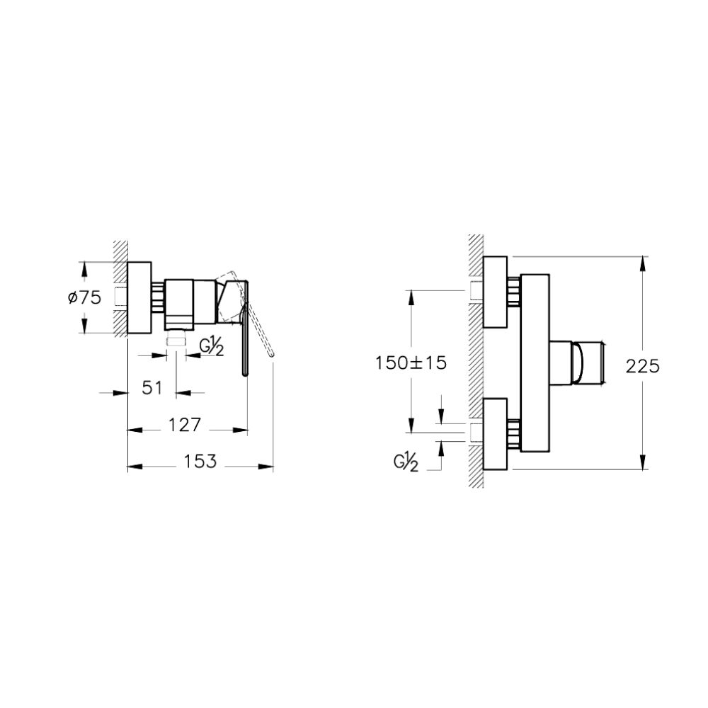 - Entraxe : 150 mm