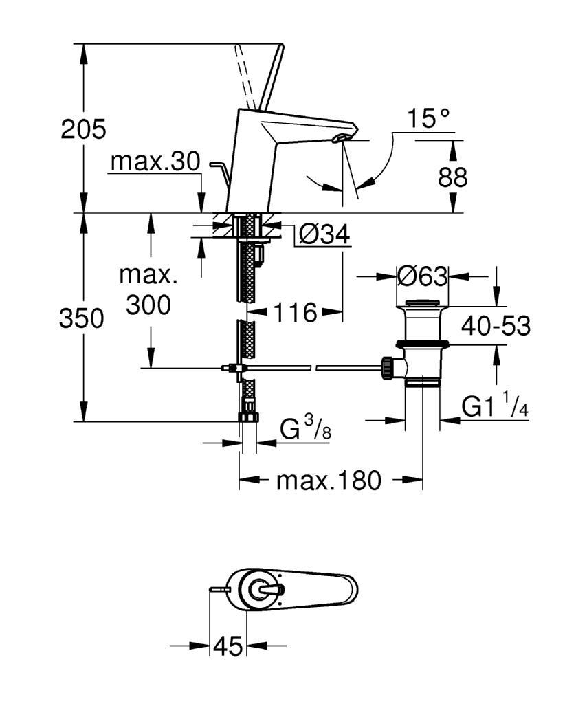 Grohe Eurodisc Joy Mitigeur monocommande 1/2" lavabo Taille S (23425000)