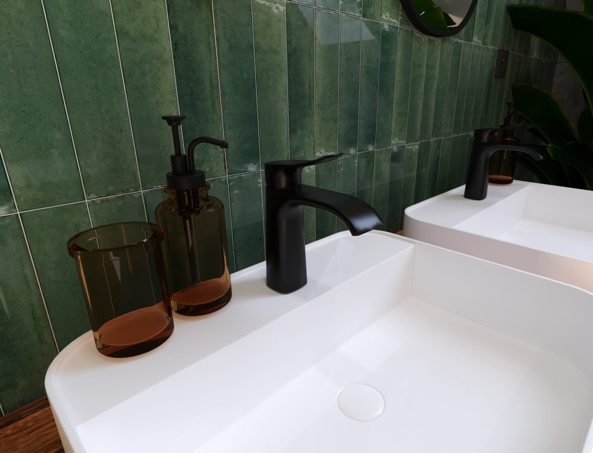 Swiss Aqua Technologies Infinitio mitigeur de lavabo avec bec cascade, sans vidage, noir mat (SATBSINF271C)