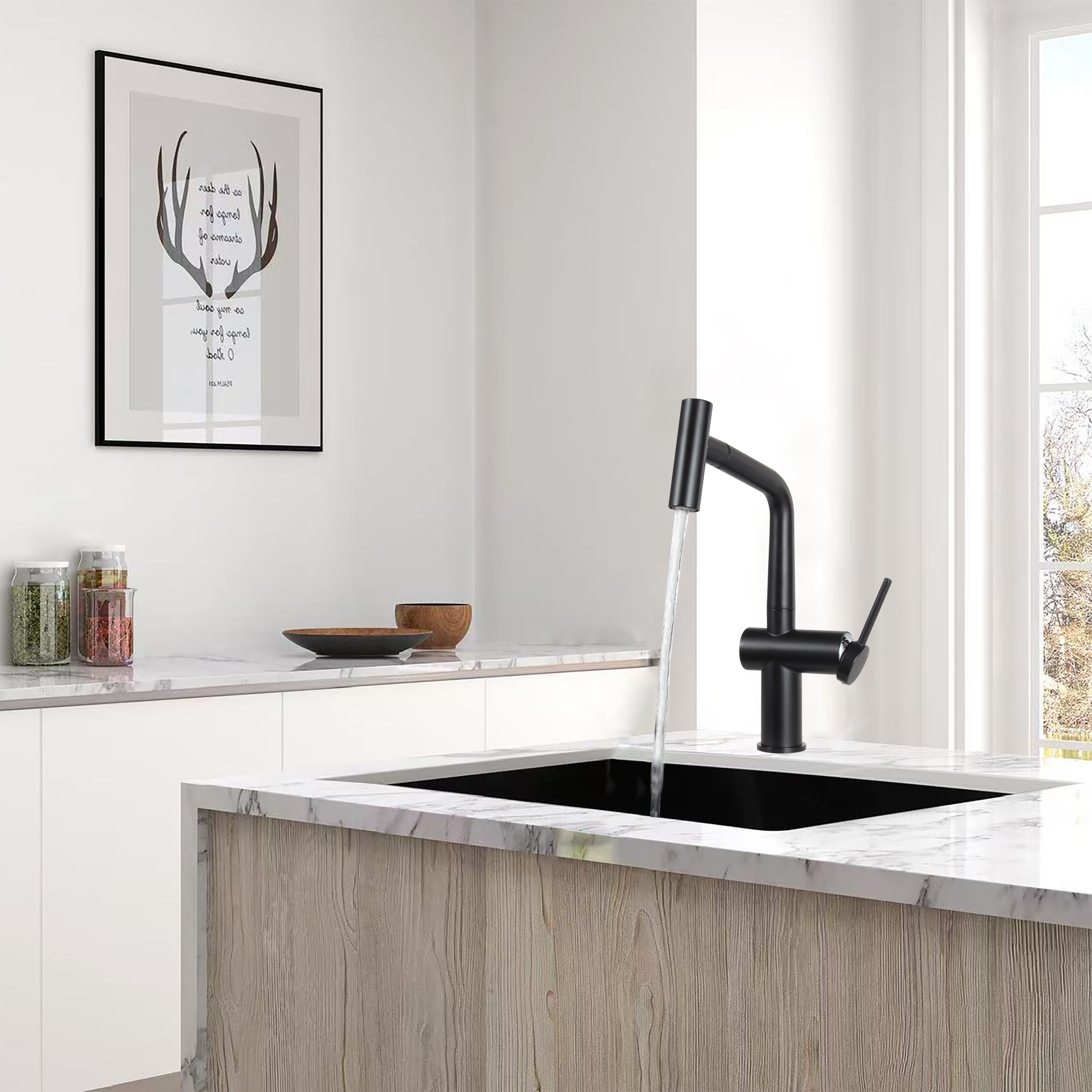 Timeless mitigeur d'évier à levier en acier inoxydable avec douchette extractible, monotrou, noir mat (TMLKF185BM) :
