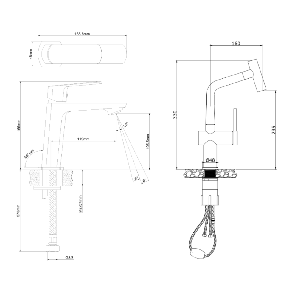 - Hauteur du mitigeur:16,5 cm