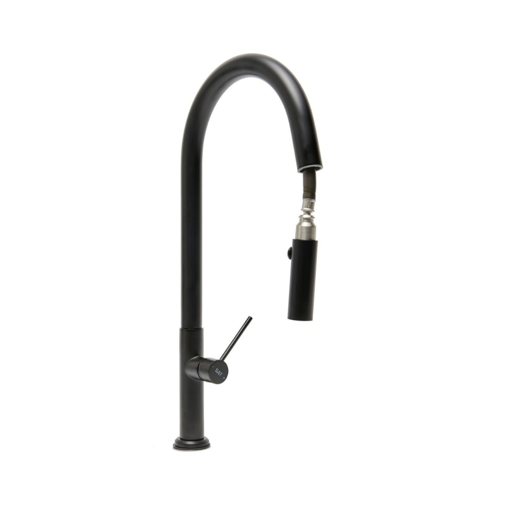 Mitigeur monocommande avec douchette extractible et bras pivotant, 2 jets, Noir mat (SATBSD288C) :