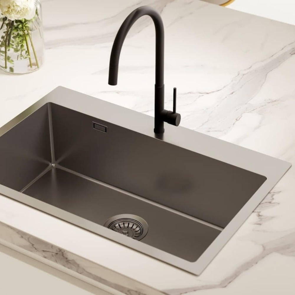 Swiss Aqua Technologies Set mitigeur lavabo + mitigeur monocommande cuisine avec douchette extractible 2 jets, noir mat (SATBSBW288C)