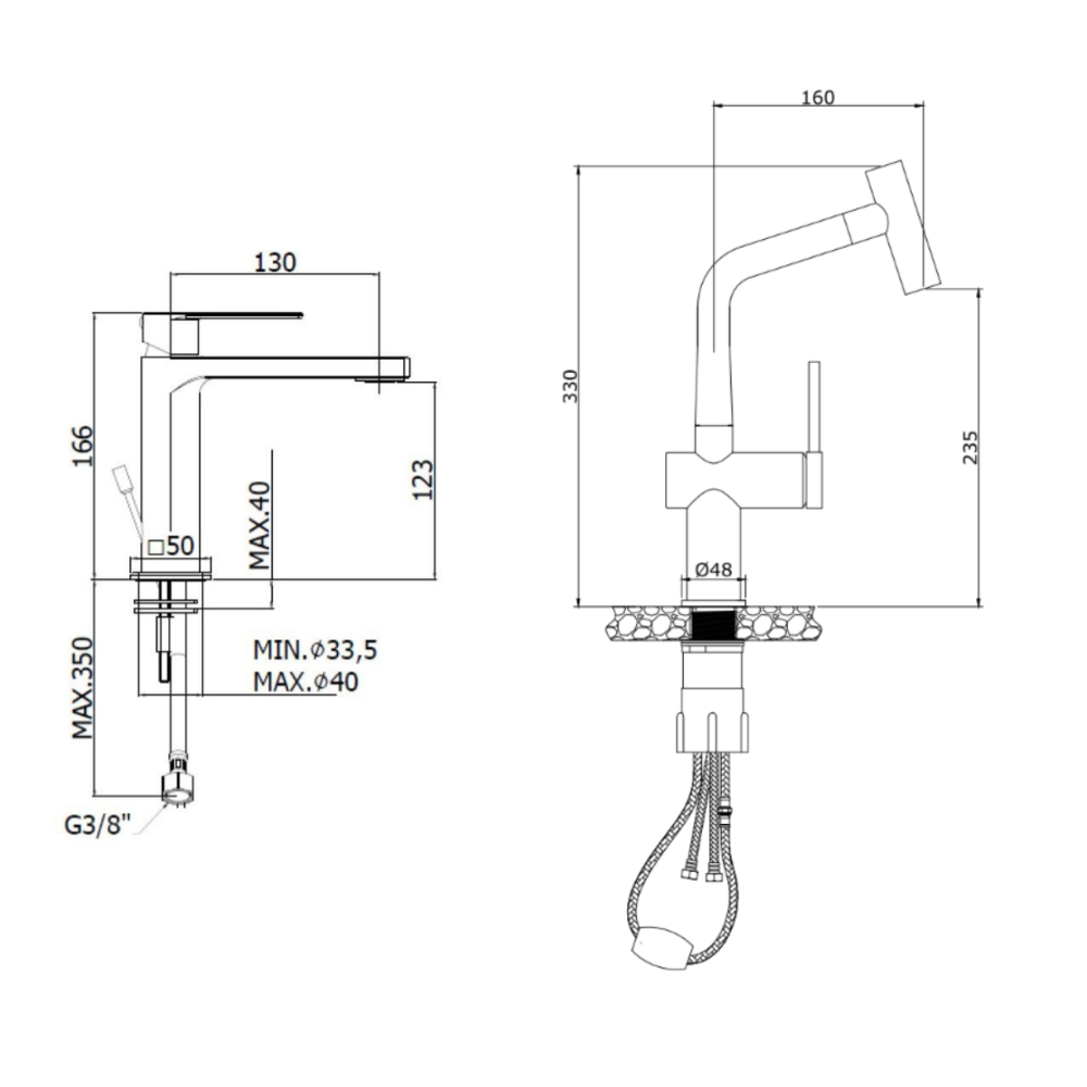 - Hauteur de meuble sous vasque conseillé : 33 cm