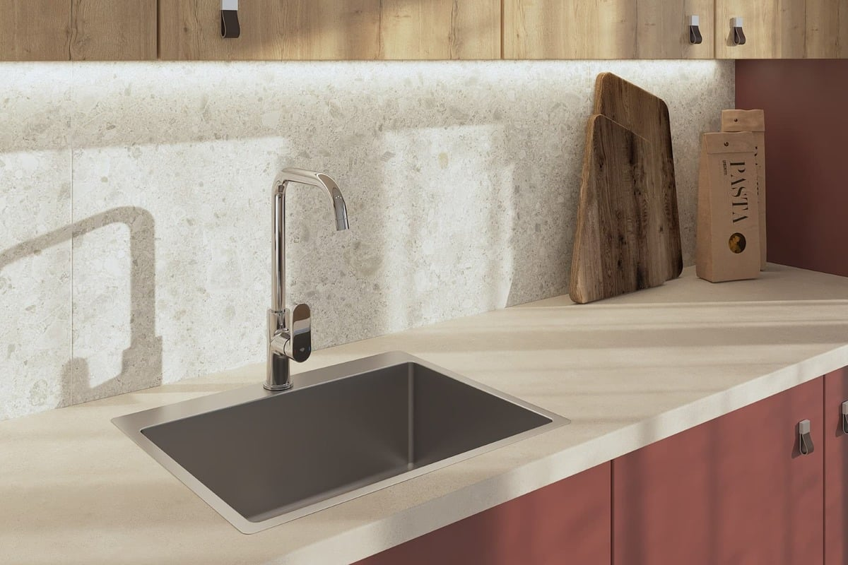 Caractéristiques du set mitigeur lavabo avec bras pivotant Swiss Aqua Technologies Dark + mitigeur cuisine avec douchette extractible 2 jets, bras pivotant, chrome (SATBSD2280LCR) :