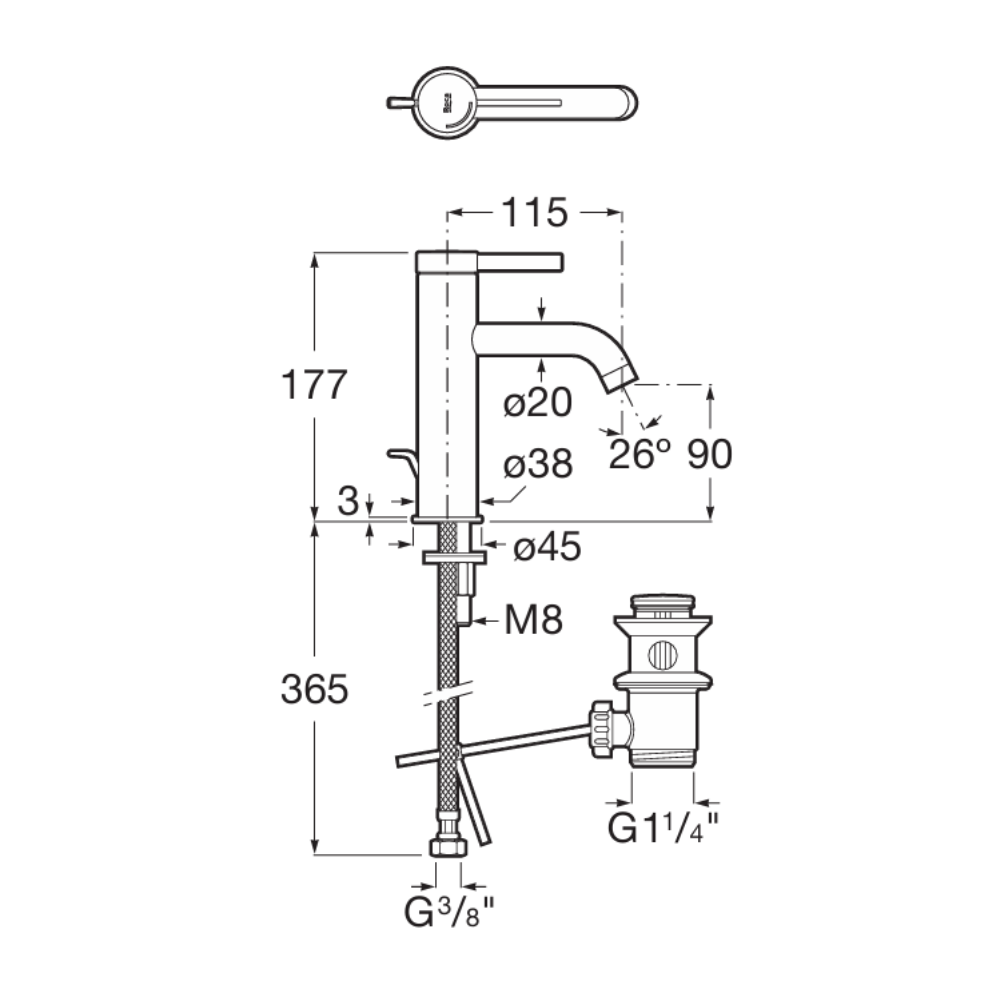 Caractéristiques du mitigeur de lavabo à levier technologie ColdStart, avec vidage, Roca Ona, noir mat (A5A309ENB0) :