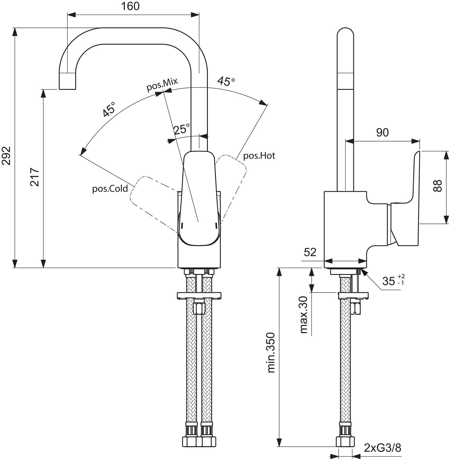 Ideal Standard CERAPLAN III - Mitigeur de lavabo à levier (B0708AA)