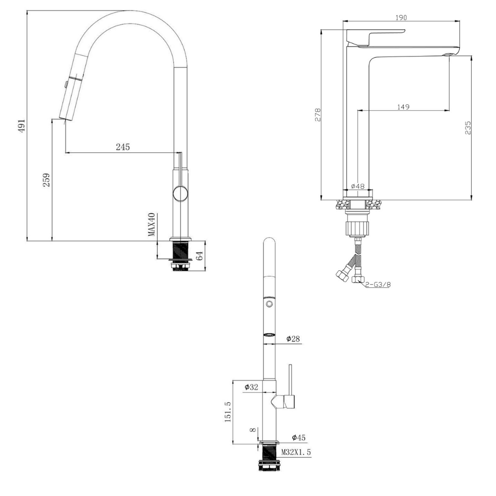 - Hauteur du mitigeur : 491 mm