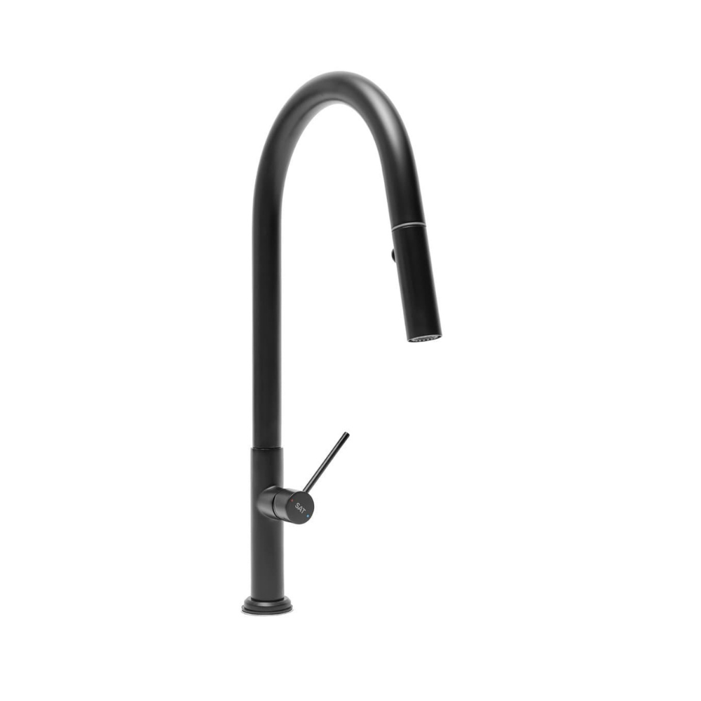 Mitigeur monocommande avec douchette extractible et bras pivotant, 2 jets, Noir mat (SATBSD288C) :