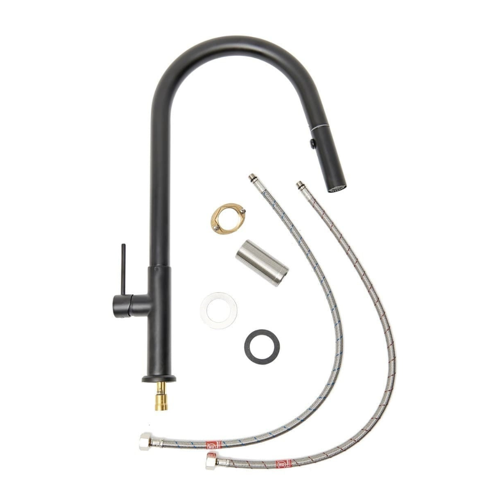 Swiss Aqua Technologies set mitigeur lavabo XL + mitigeur monocommande de cuisine avec douchette extractible 2 jets, noir mat (SATBSM288C)