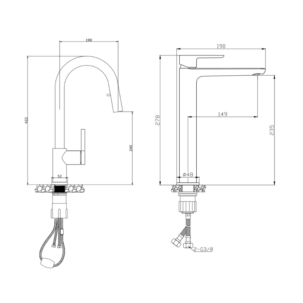 - Longueur du tuyau : 40 cm (raccord G3/8)