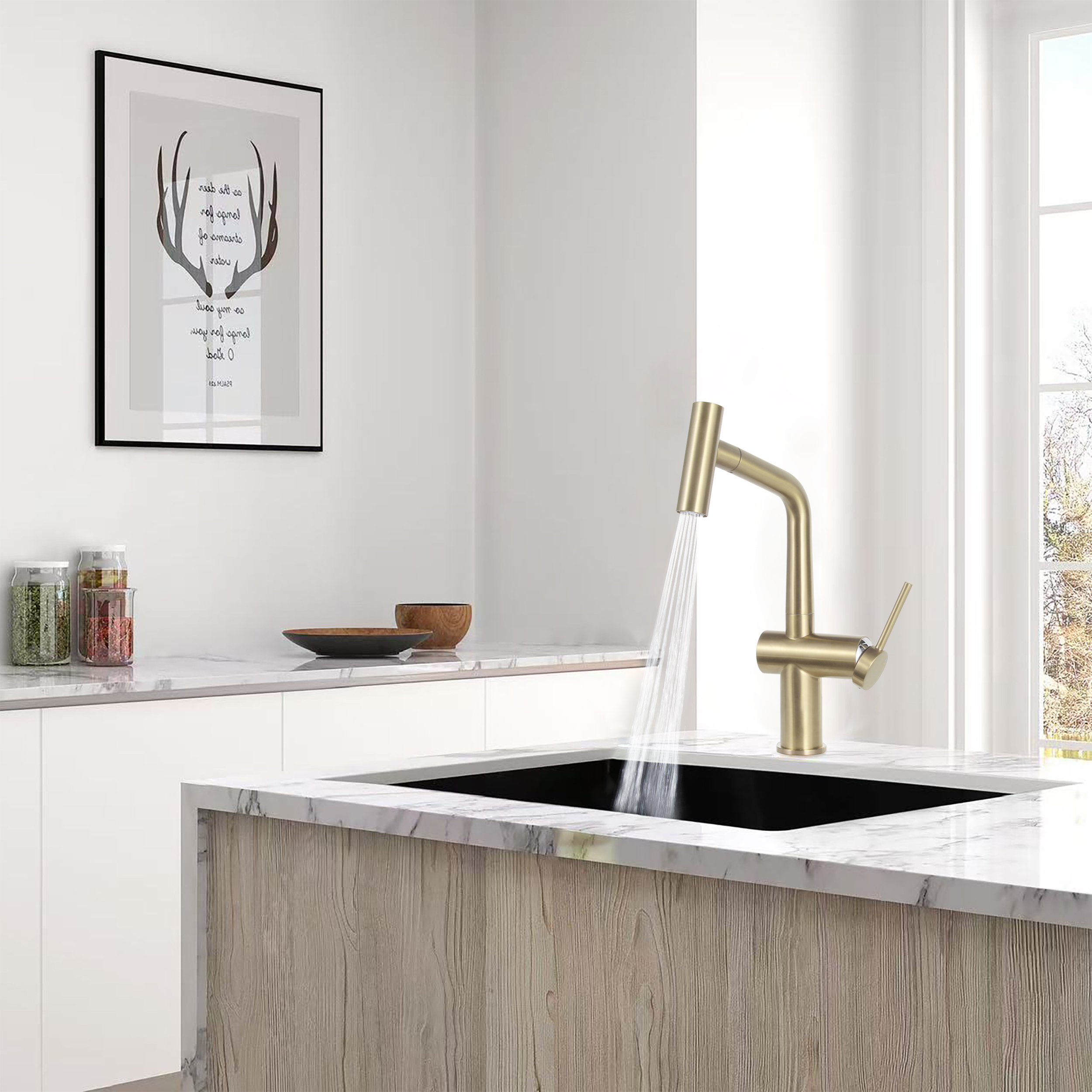 - Ceramia Timeless mitigeur d'évier à levier en acier inoxydable avec douchette extractible, monotrou, or brossé (TMLKF185BG)