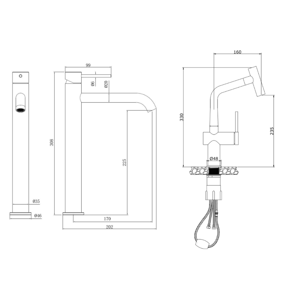- Hauteur du robinet : 30,8 cm
