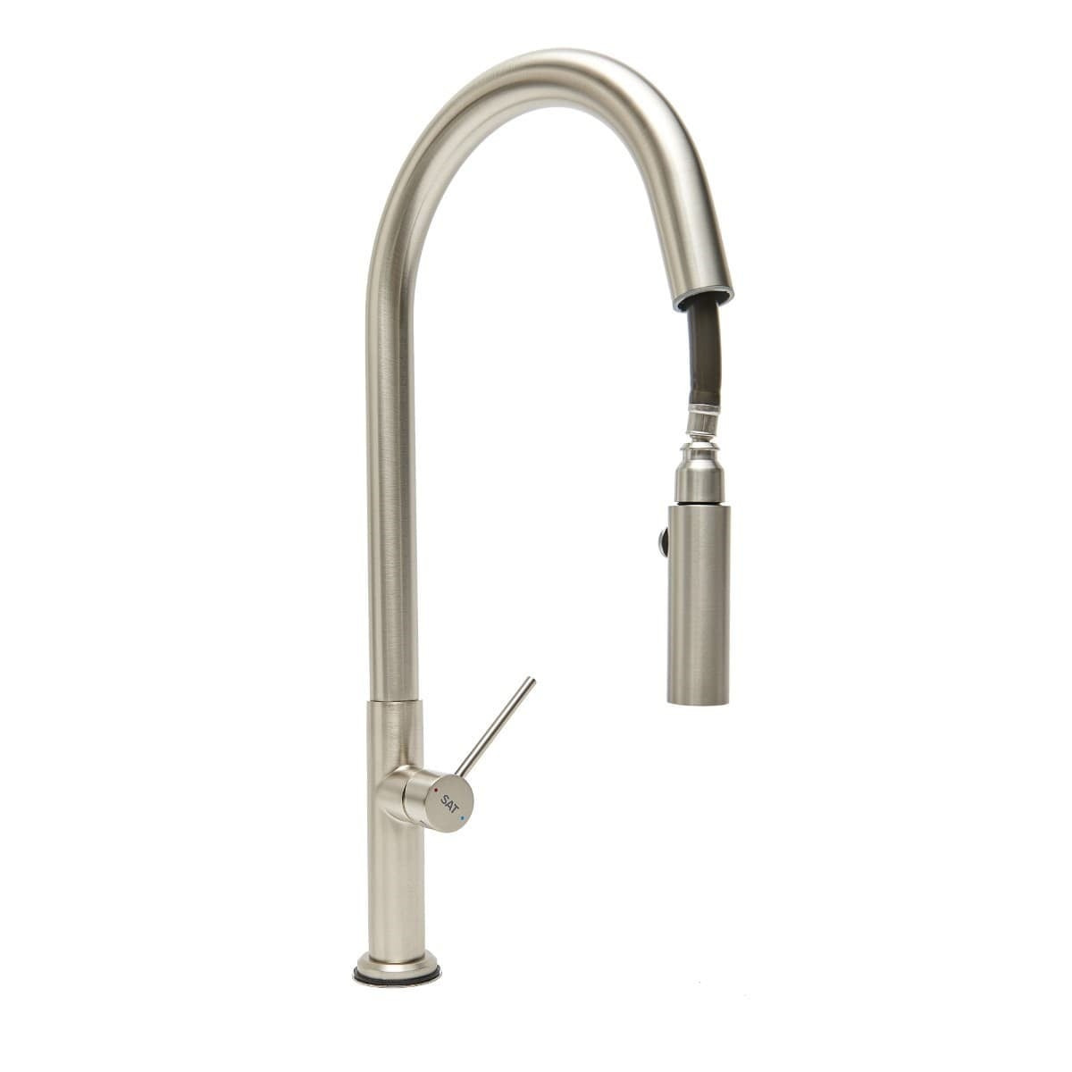 - Swiss Aqua Technologies Mitigeur monocommande avec douchette extractible et bras pivotant, 2 jets, Aspect acier inox