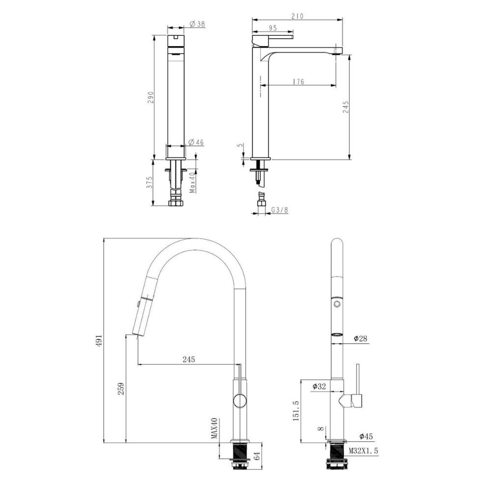 Swiss Aqua Technologies set mitigeur lavabo XL + mitigeur cuisine avec douchette extractible 2 jets et bras pivotant (SATBSDFU285DT)