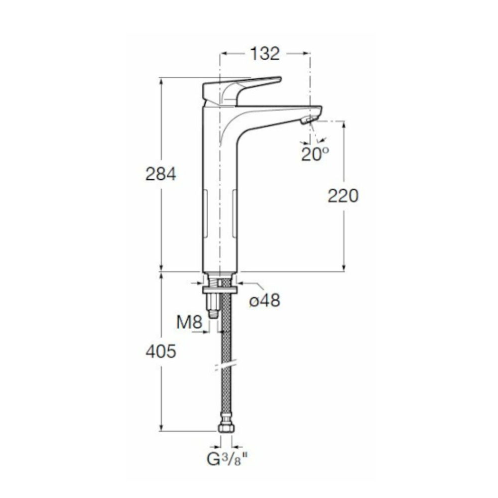 Roca Atlas mitigeur de lavabo XL 28,4 cm à levier, sans vidage, chrome (A5A3790C00)
