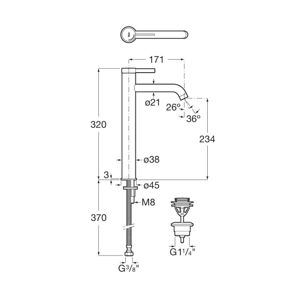 Caractéristiques du mitigeur de lavabo XL à levier, hauteur 32 cm, avec bonde clic-clac, Roca Ona, noir mat (A5A349ENB0) :