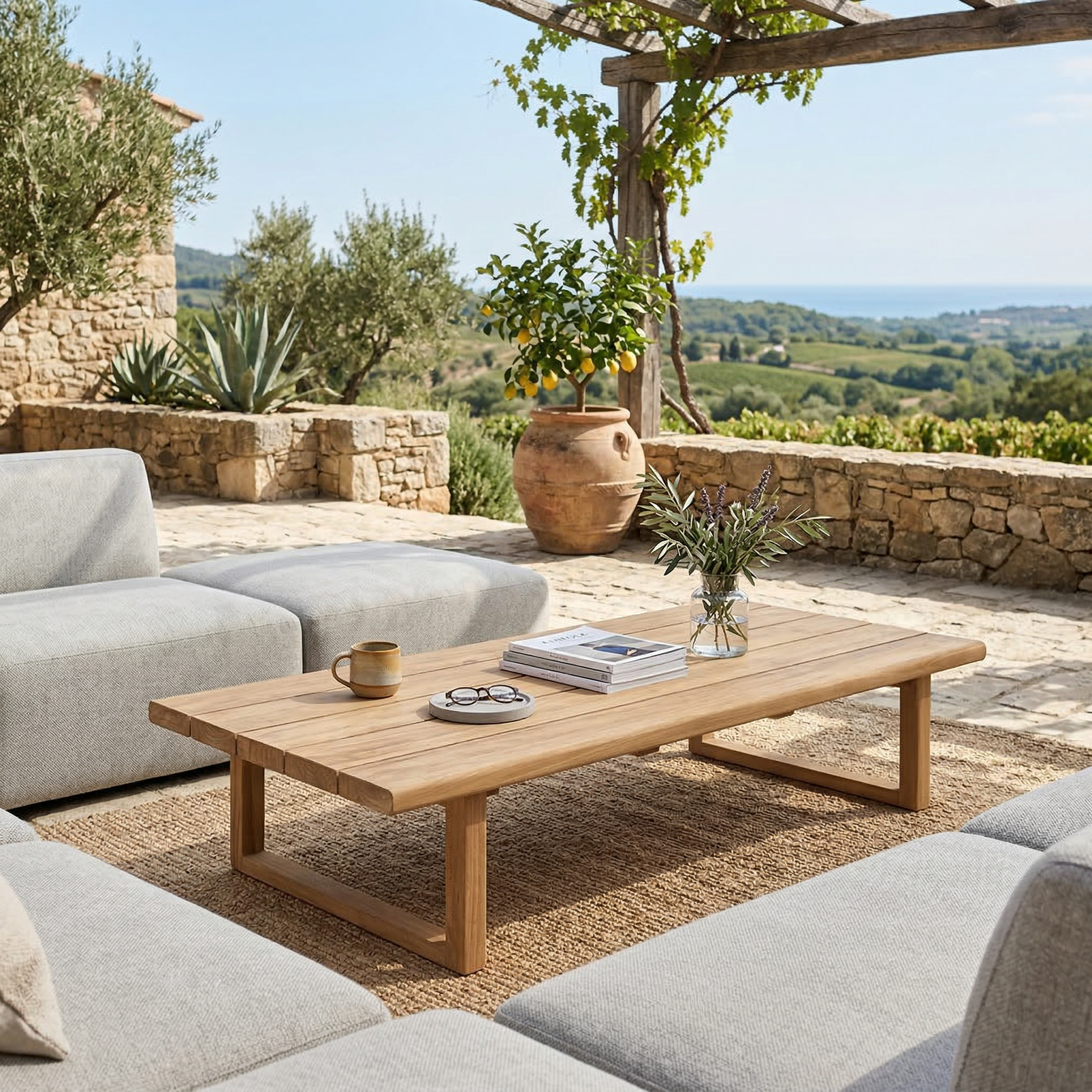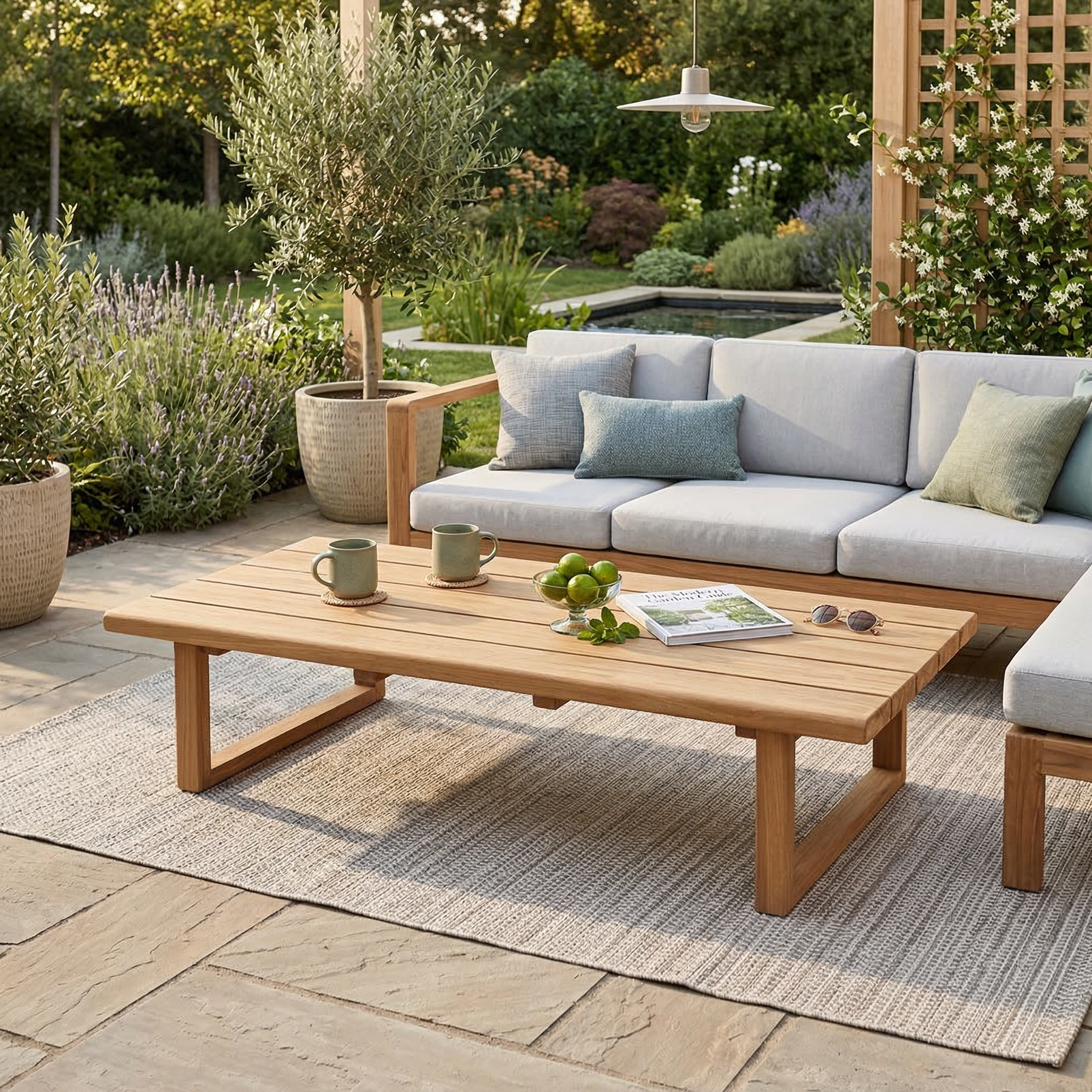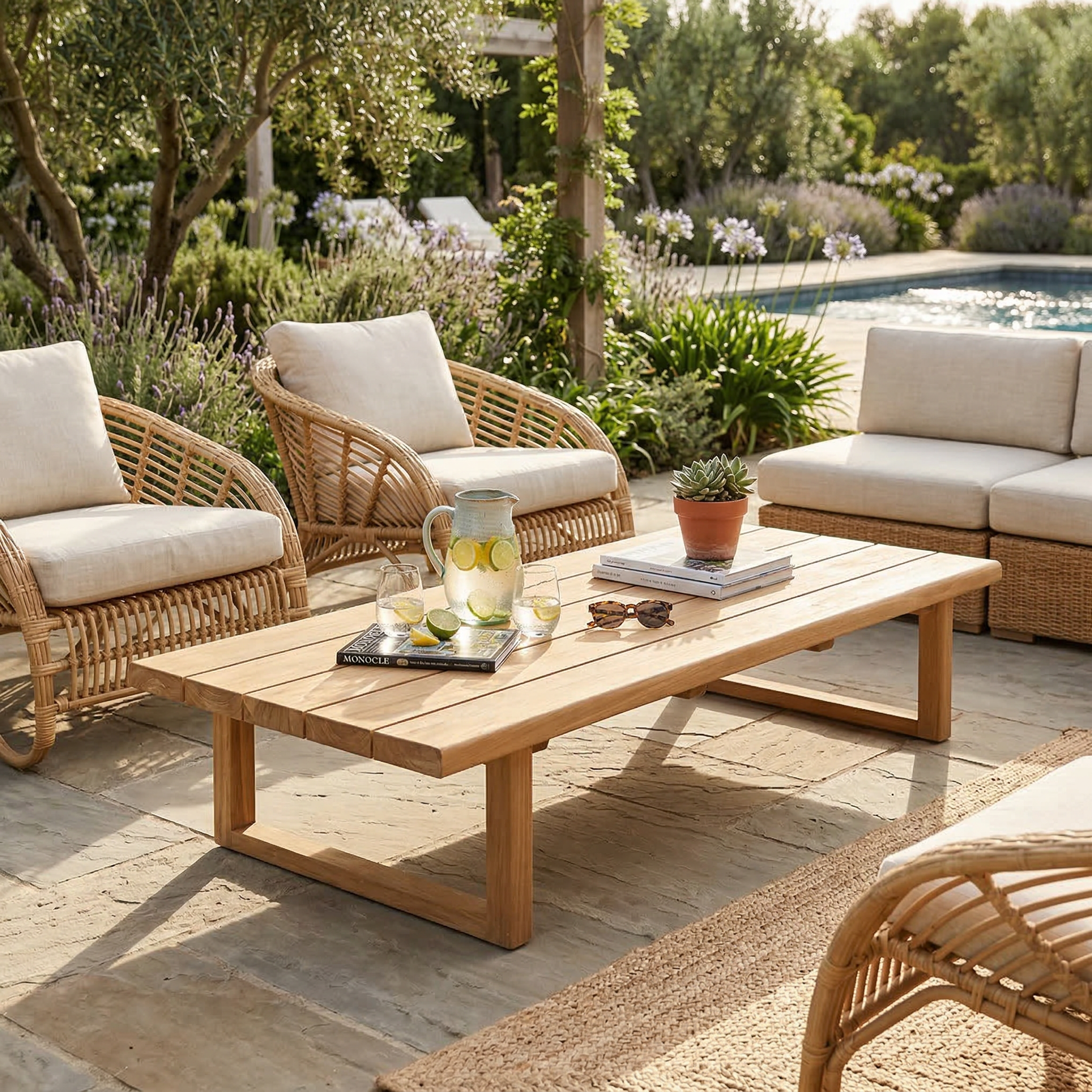 Son teck massif au charme authentique donne immédiatement un aspect chic et chaleureux à votre extérieur, comme une maison de vacances où l’on aime passer du temps.