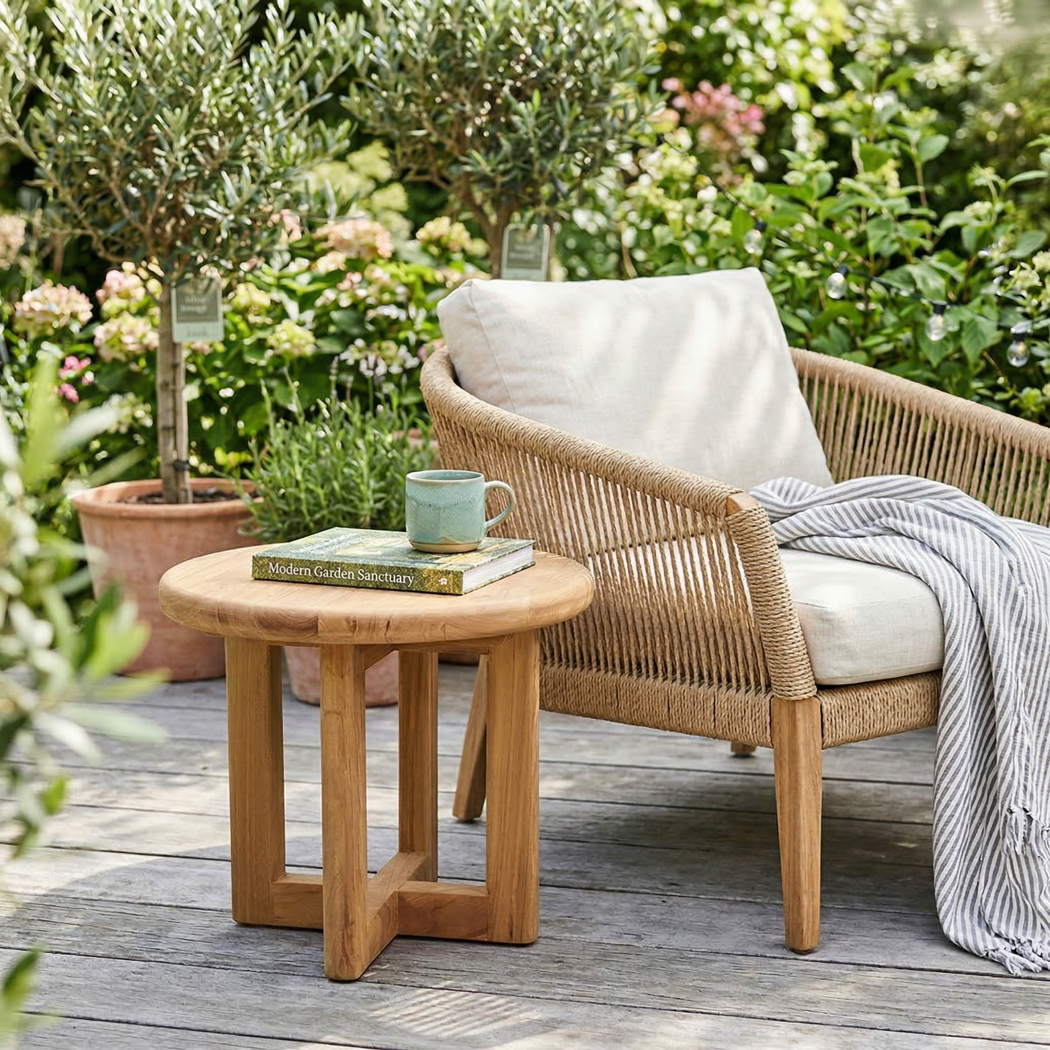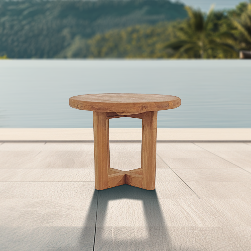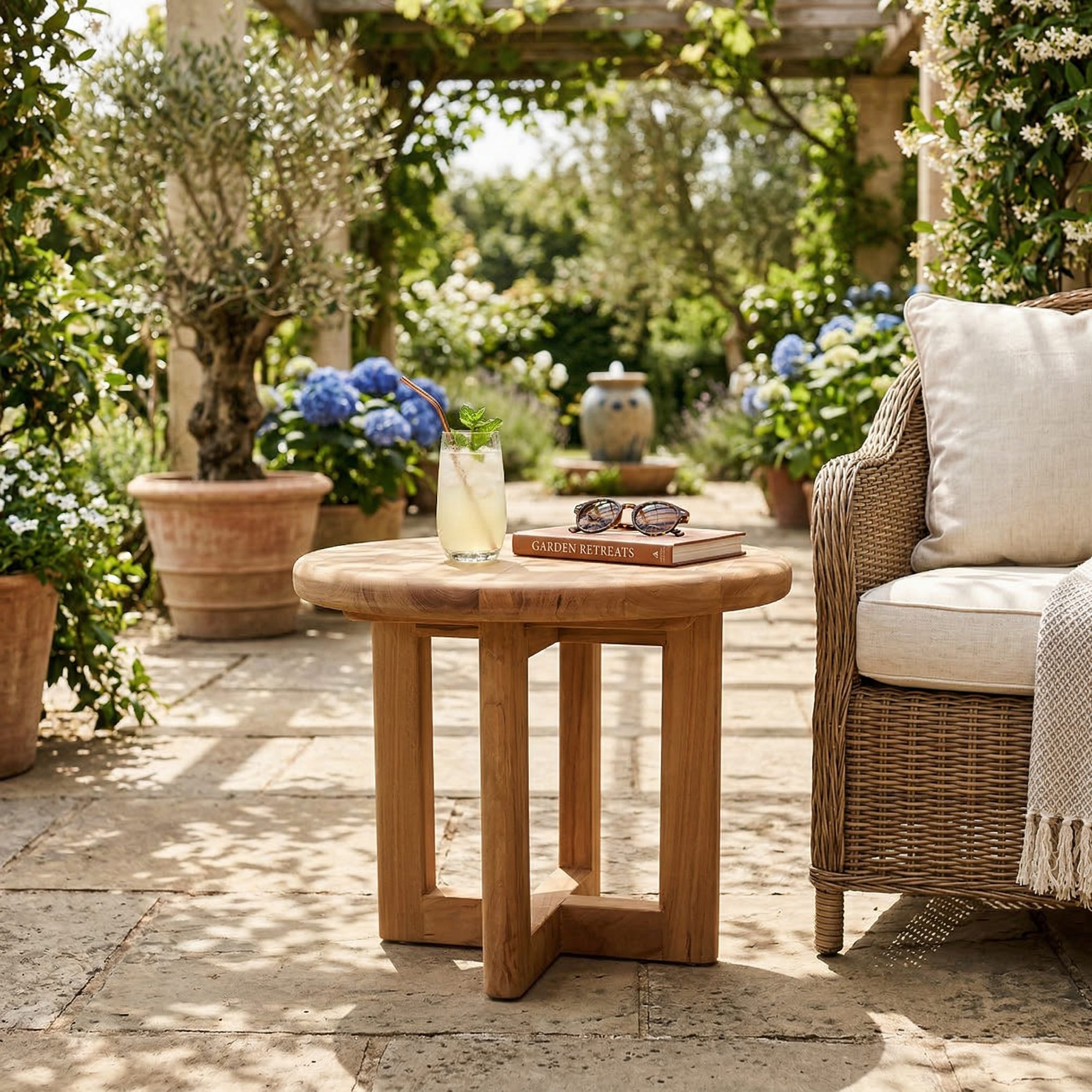 Table d’appoint ronde en teck massif – élégance naturelle pour des moments d’été en extérieur (NATOFTB5050R)