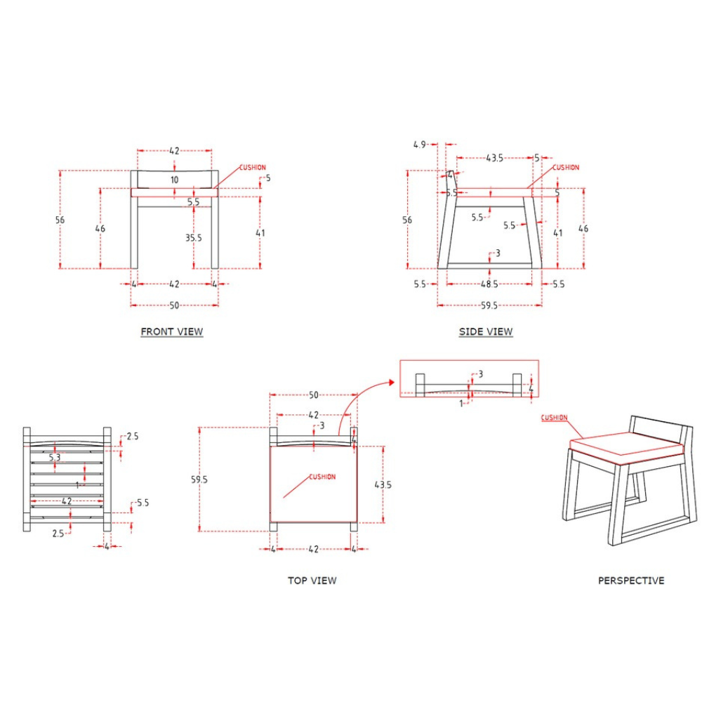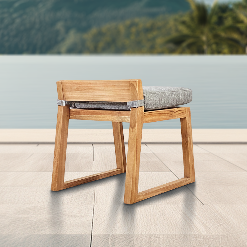 Chaise de jardin en teck massif avec coussin gris sans dossier – élégance naturelle pour des moments d’été en extérieur (NATOFCH50S)