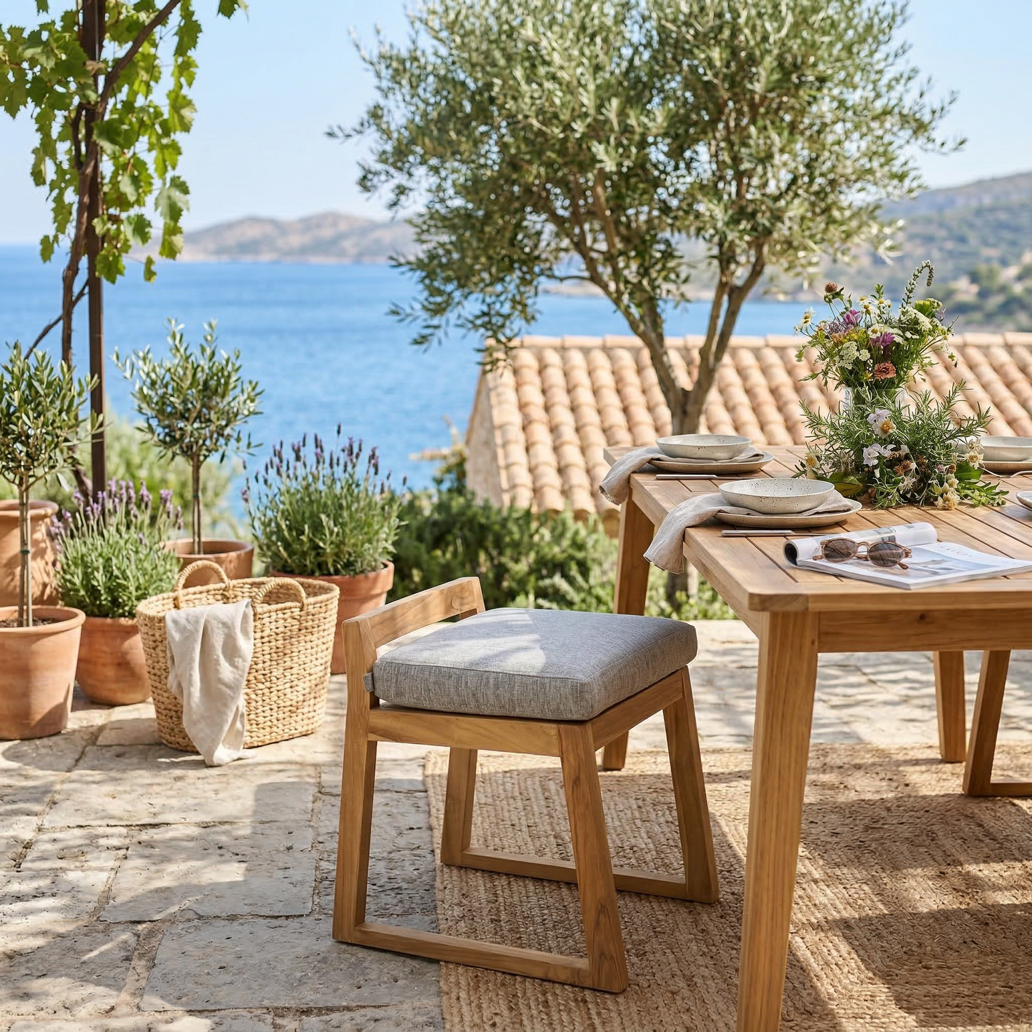 Son teck massif au charme authentique donne immédiatement un aspect chic et chaleureux à votre extérieur, comme une maison de vacances où l’on aime passer du temps.