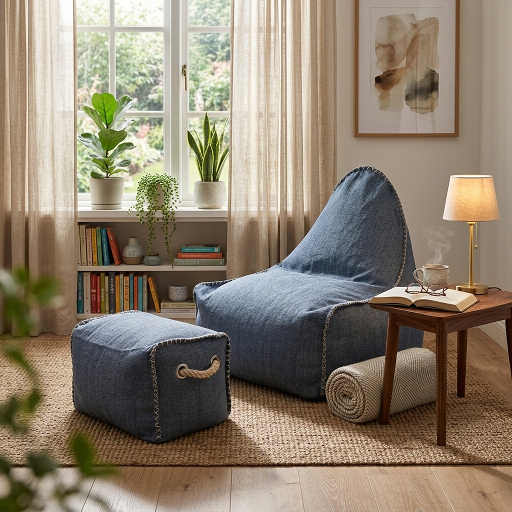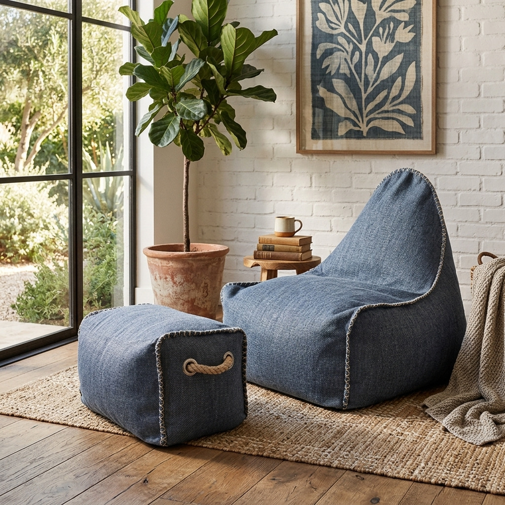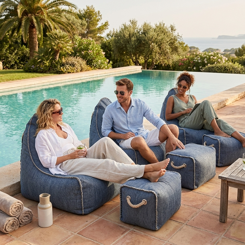 Craquez pour un vrai spot cosy dedans comme dehors avec ce fauteuil poire et son repose-pieds, parfait pour chiller, lire ou juste prendre le temps.