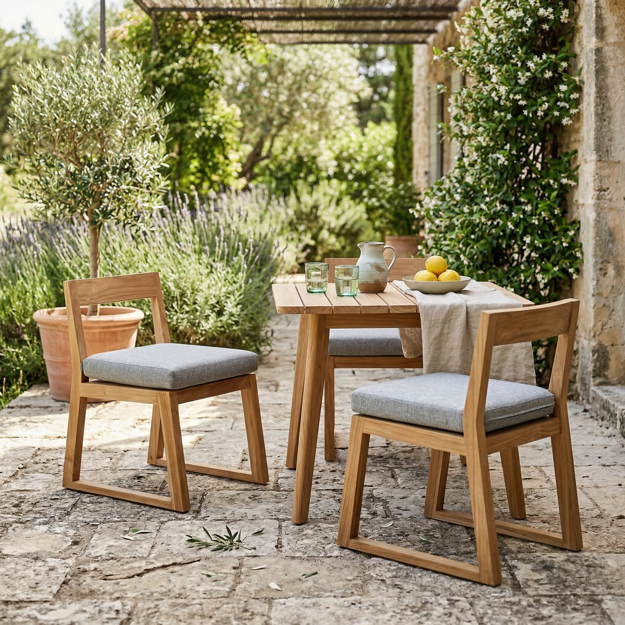 Le teck massif au charme authentique donne immédiatement un aspect chic et chaleureux à votre extérieur, comme une maison de vacances où l’on aime passer du temps.