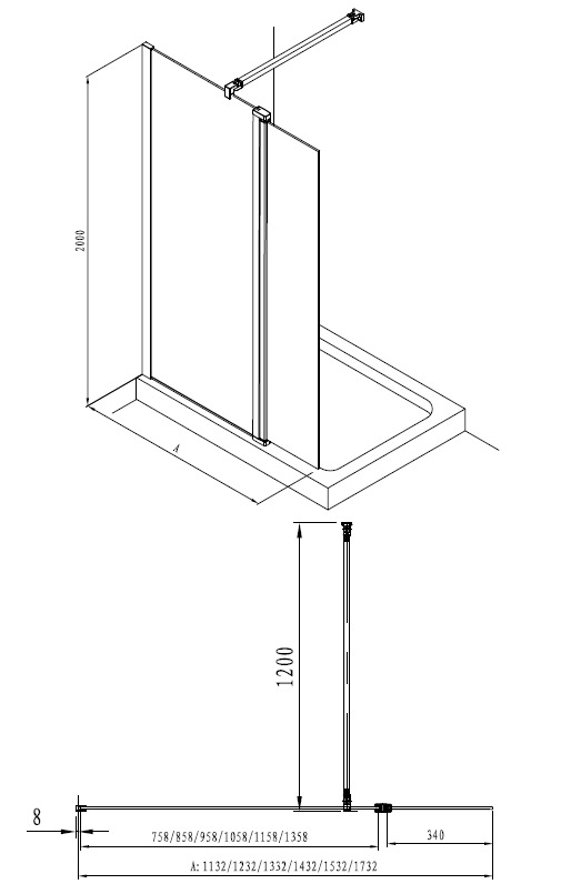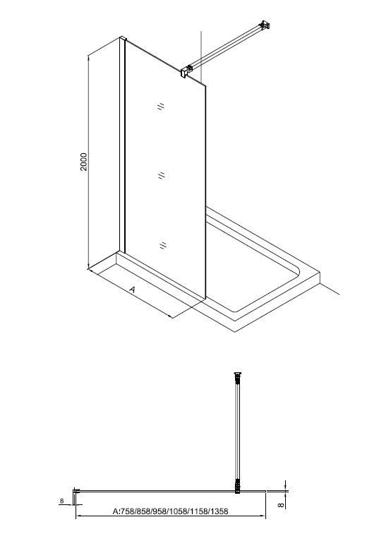 - Compatible avec toutes les parois de douche à l'italienne de 8mm d'épaisseurs