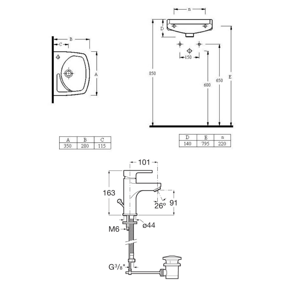 - Type de produit: Lavabo + mitigeur