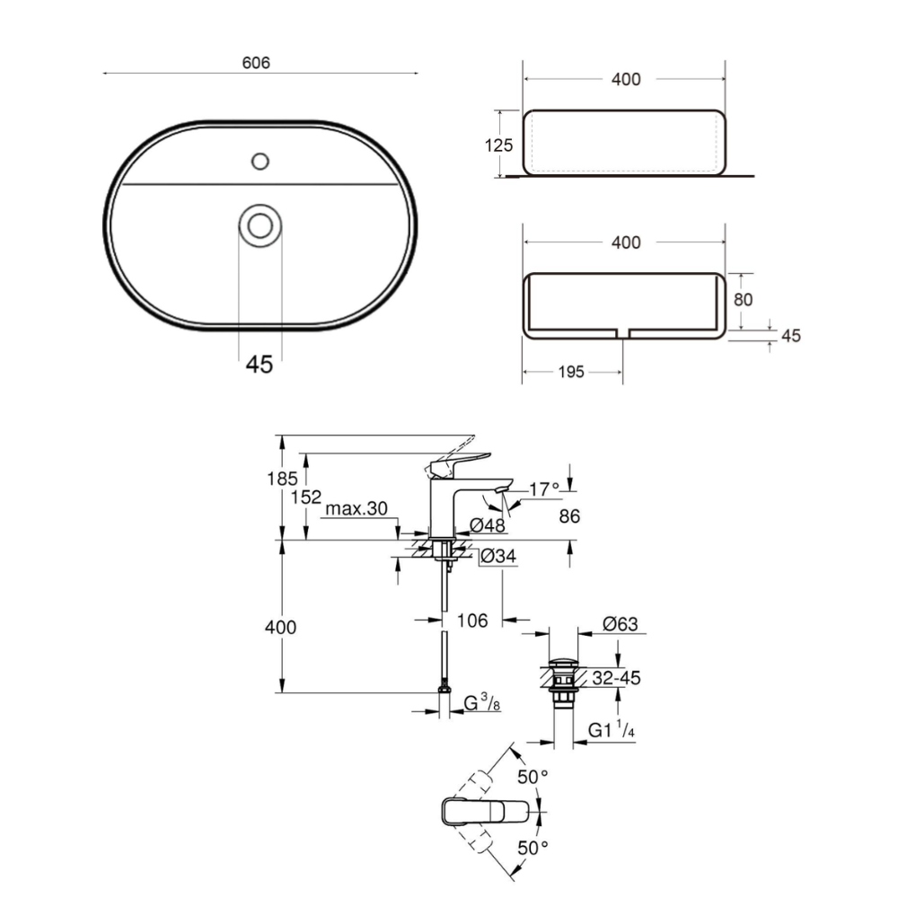 Grohe QUICKFIX DICE mitigeur lavabo taille S + Vasque à poser Swiss Aqua Technologies 60x40x12,5cm (BA2-G1018570000-01)