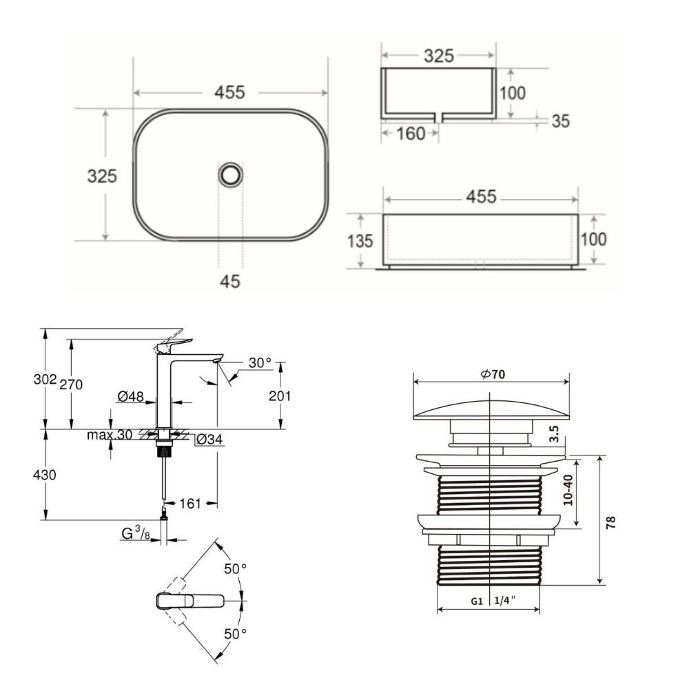 - Type de produit : vasque à poser sans trop-plein