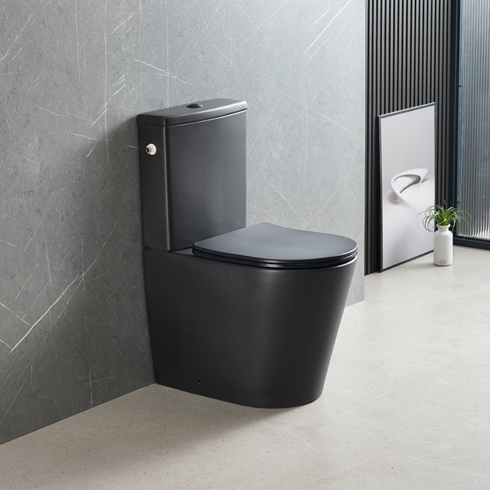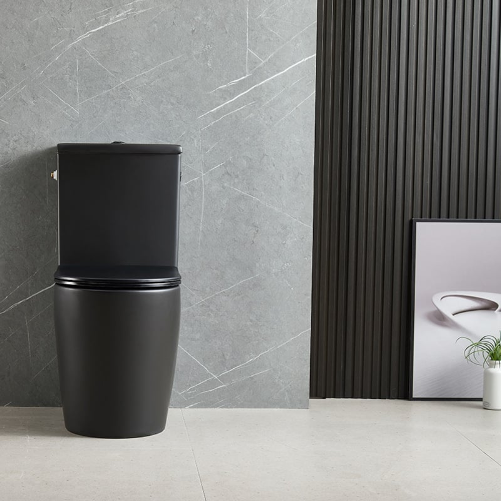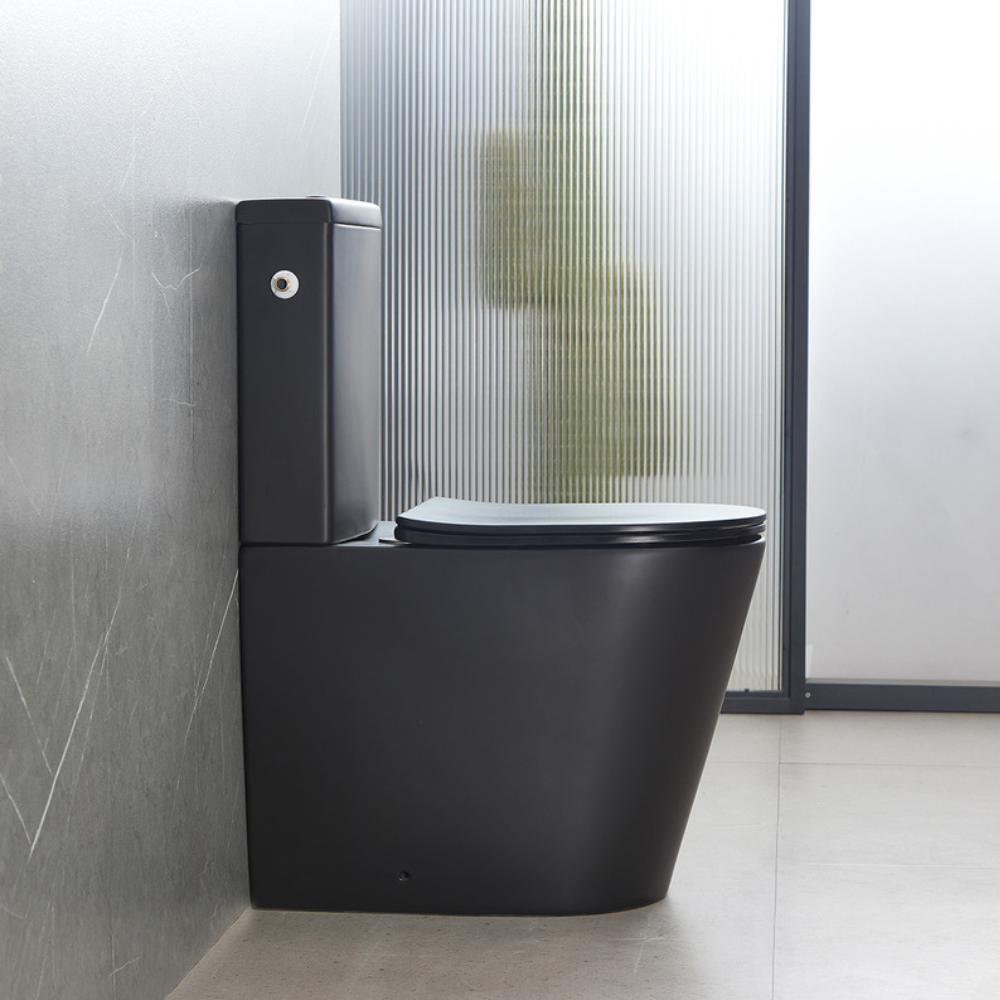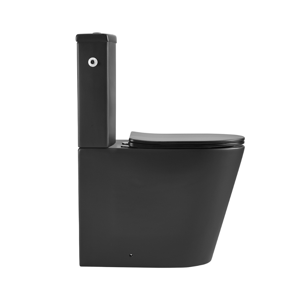 Swiss Aqua Technologies Brevis WC à poser complet sans bride en céramique avec abattant SoftClose, rinçage Vortex, noir mat (SATBRE031RTORVPBKM)