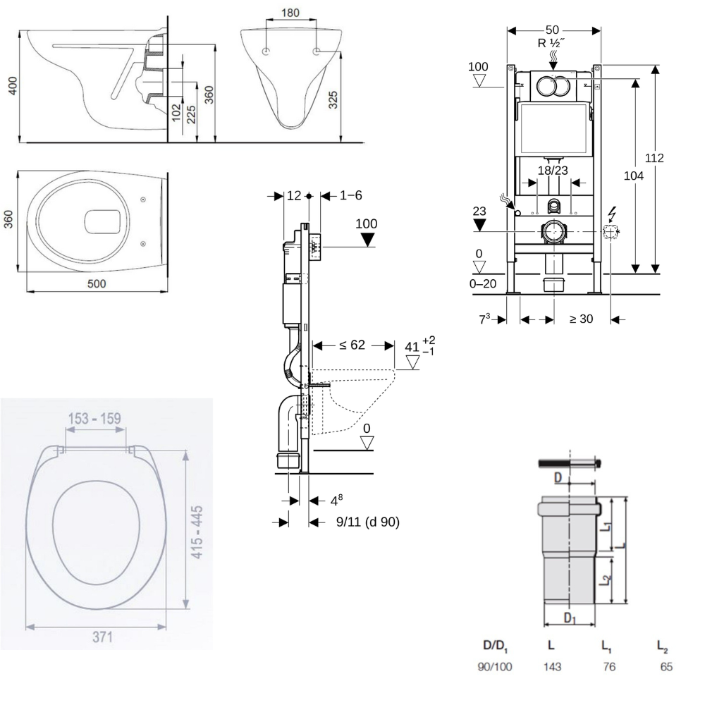 - Geberit Delta Pack bâti-support Duofix 112cm + plaque de commande blanche Delta01 + fixations murales (111.154.11.2)