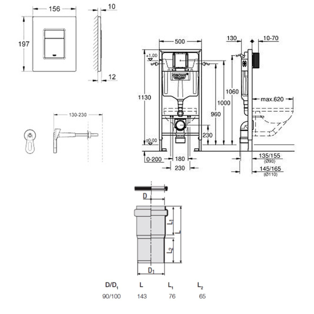 Caractéristiques du Pack WC Bâti-support Grohe RAPID SL + WC lavant suspendu Sensia Alpine + Plaque chrome + Set habillage (RSLSENSIAKF0) :