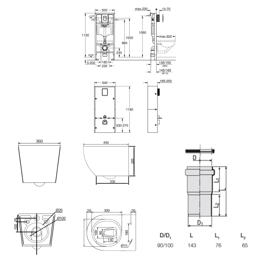 - A utiliser pour les évacuations murales et les évacuations au sol avec un distance centrée de 60 - 145 mm