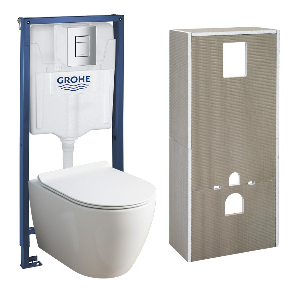 Grohe Solido + pack WC 4 en 1 + WC sans bride Ceramia PixL avec abattant SoftClose + plaque (GRCEPXWT04-FR)